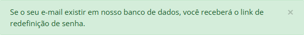 Deverá apresentar essa mensagem: "Se o seu e-mail existir em nosso banco de dado, você receberá o link de redefinição de senha."