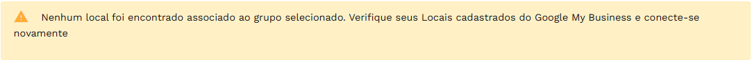 “Nenhum local foi encontrado associado ao grupo selecionado. Verifique seus Locais cadastrados do Google My Business e conecte-se novamente.”
