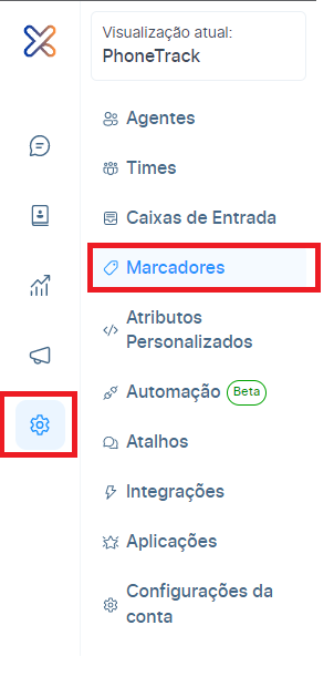 Clique na opção “Configurações”, no menu esquerdo, sem seguida, clique na opção “Marcadores”: