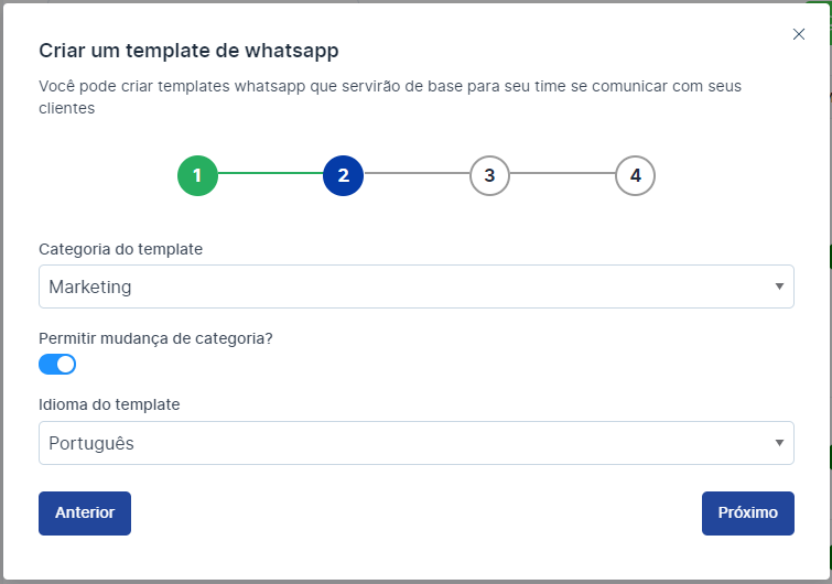 Nessa próxima etapa podemos configurar os campos das mensagens, é possível escolher entre texto, imagem, documento e vídeo.