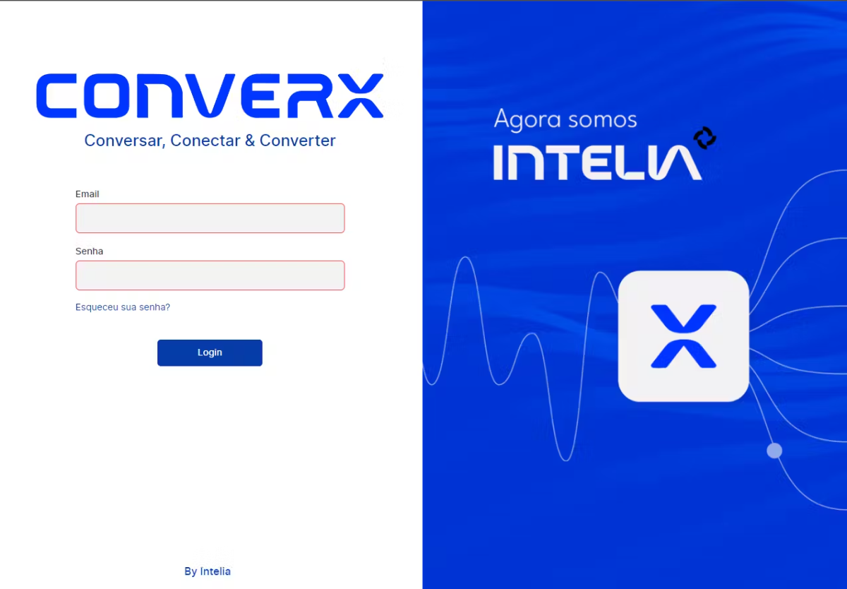 Primeiro, acesse o site https://converx.app/ e faça login com sua conta: