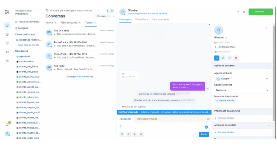 Após clicar em "Enviar", seus atalhos estarão prontos para uso nas conversas com os clientes.